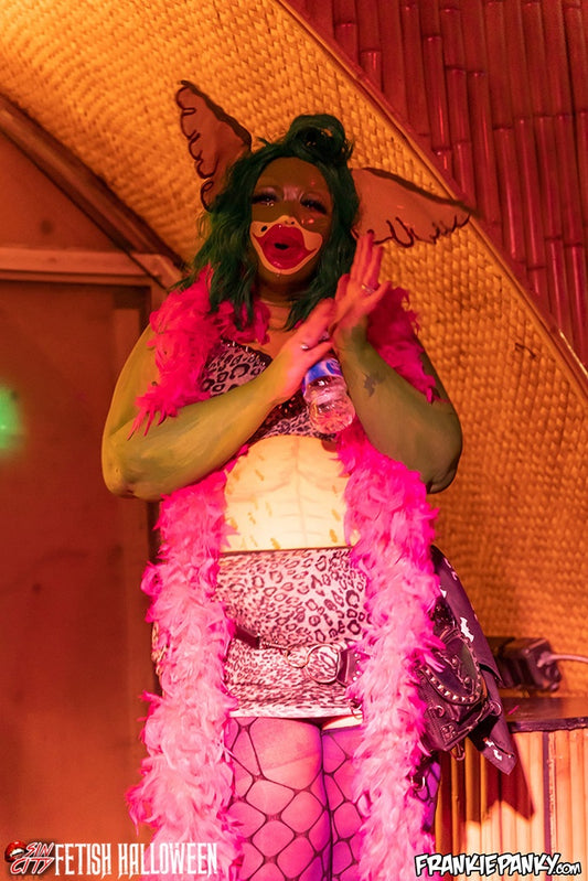Four Leaf Clover Rhinestone Latex Vest & Micro Kilt